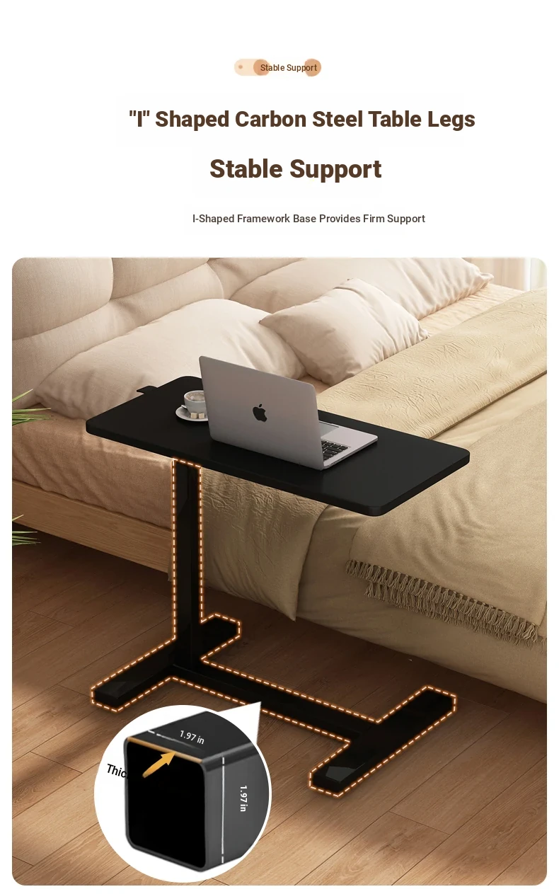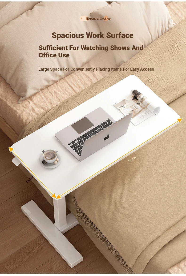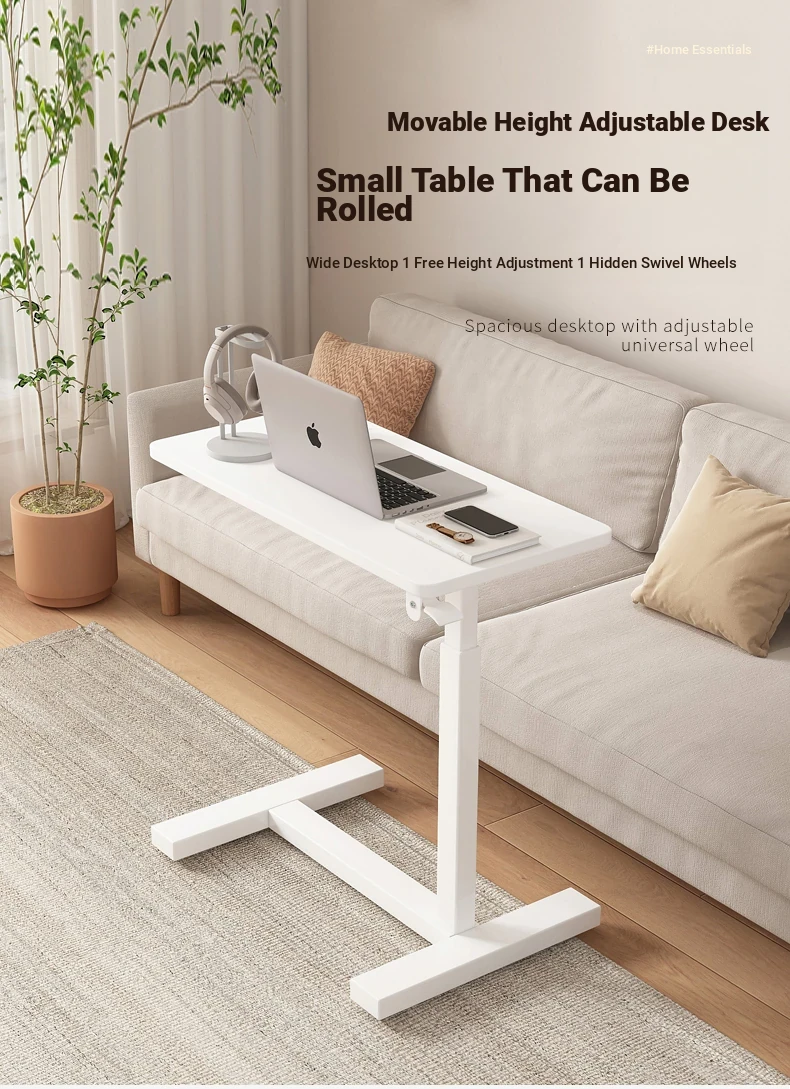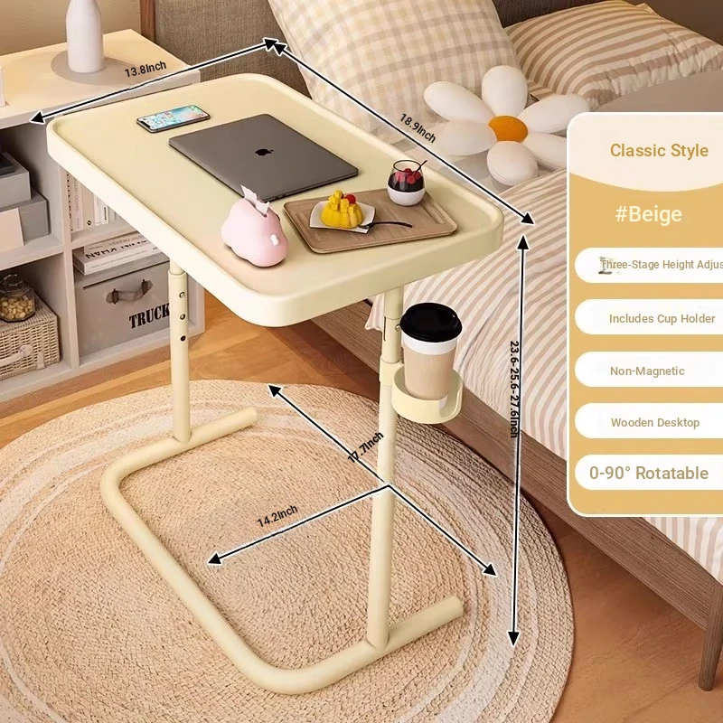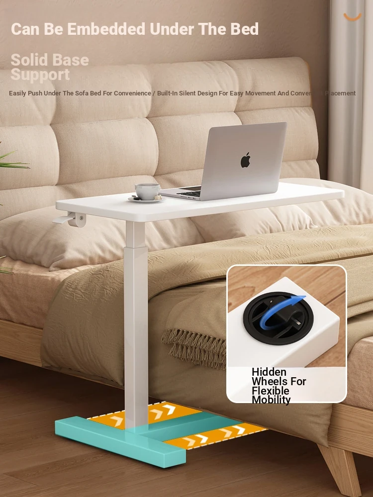 Adjustable Movable Bedside Desk - Compact Writing Table for Girls' Bedrooms, Ideal for Students and Home Use, Rectangular Design Perfect for Small Spaces