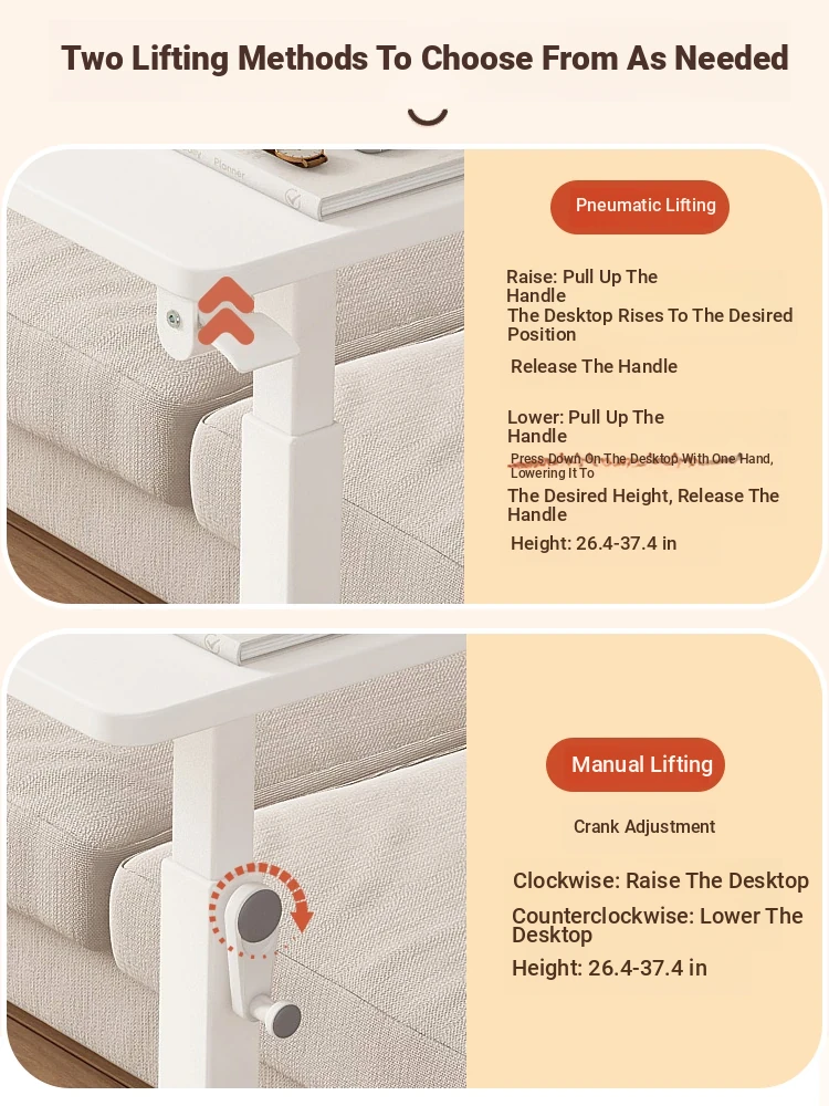 Main Image Style [Hand-Crank Height Adjustable] * White - Bedside Table