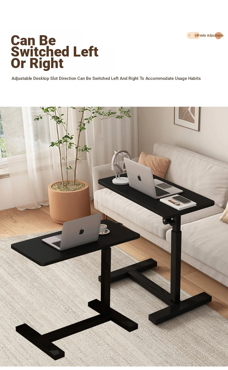 【Hand-Crank Height Adjustable】* Black - Bedside Table