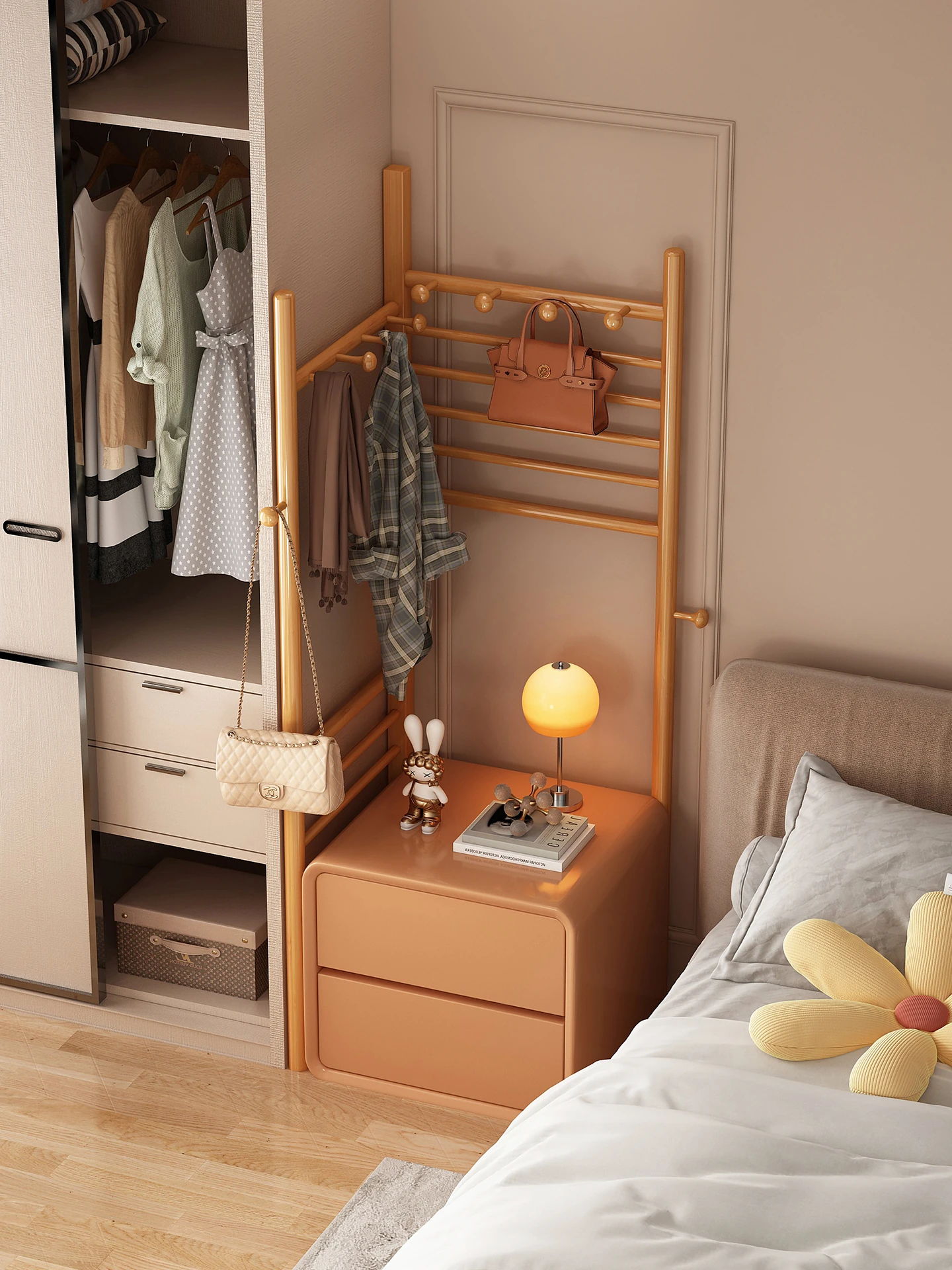 Compact Freestanding Clothes Rack - Perfect for Bedroom, Bedside, or Small Dorm Spaces - Stylish & Mobile Storage Solution for Clothing and Accessories
