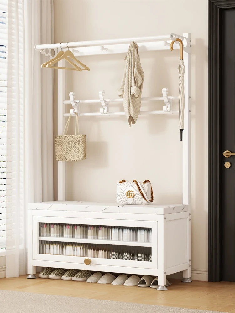 Multi-Functional Stainless Steel Shoe Bench and Coat Rack - Entryway Organizer with Seating, Perfect for Changing Shoes and Hanging Coats at Your Doorstep