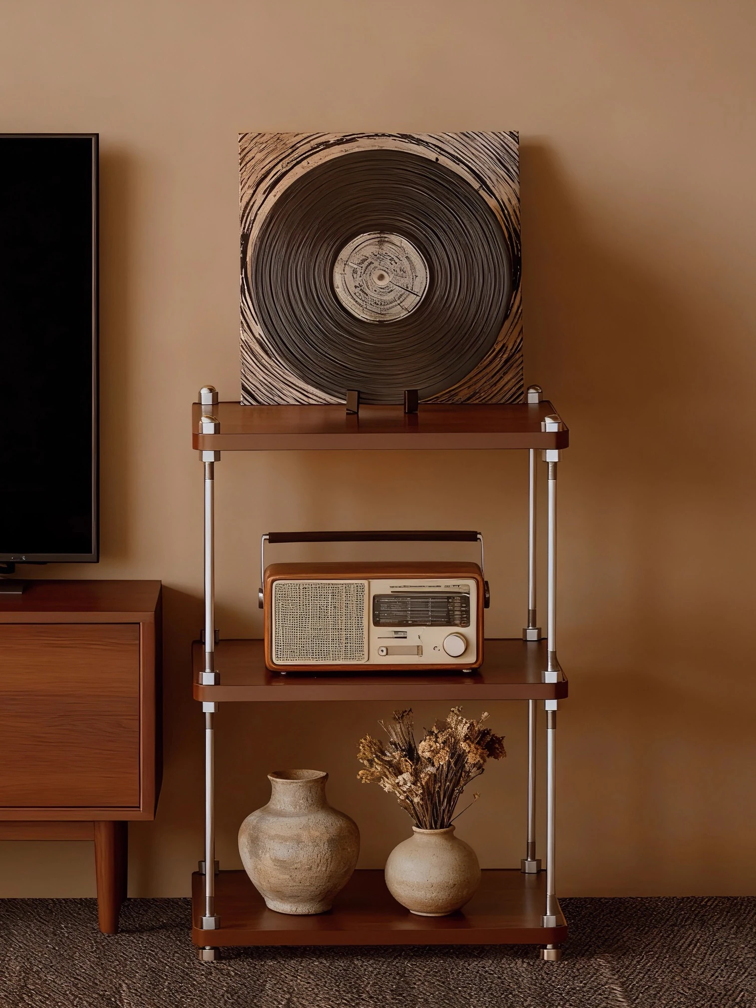 Japanese Style Floor-standing Storage Rack - Elegant Small TV Side Cabinet with Light Beam Display Shelf for Books and Decorative Items in Living Room