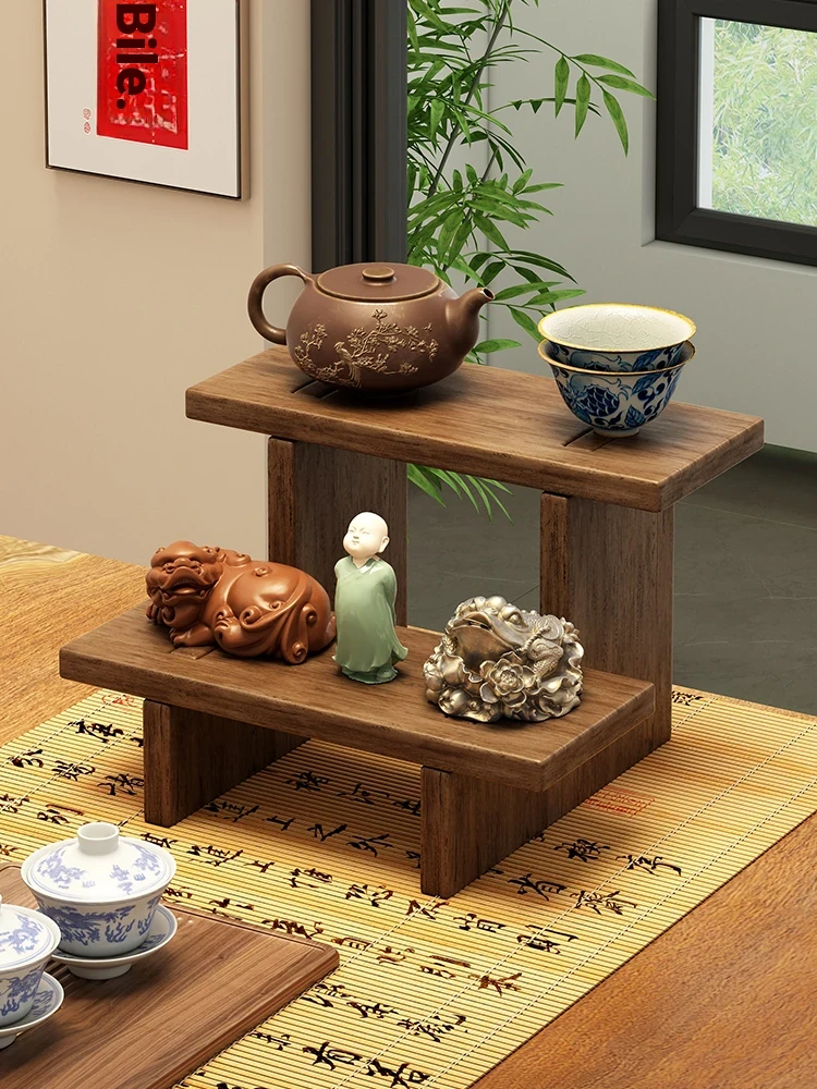 Compact Solid Wood Tea Cup Rack - Elegant Tabletop Display for Tea Sets, Teapots, and Tea Leaves - Perfect for Tea Ceremonies and Organizing Your Tea Space