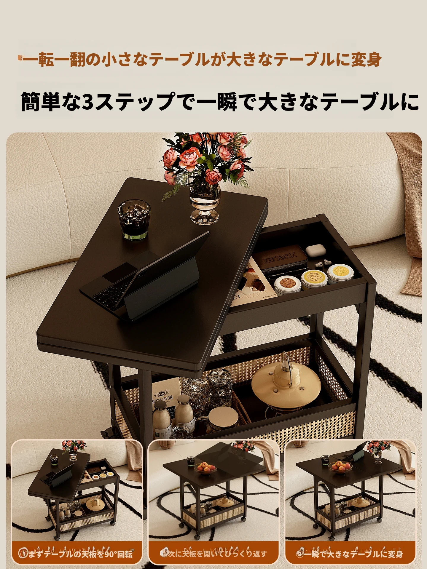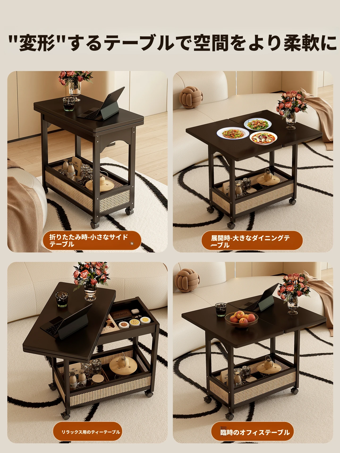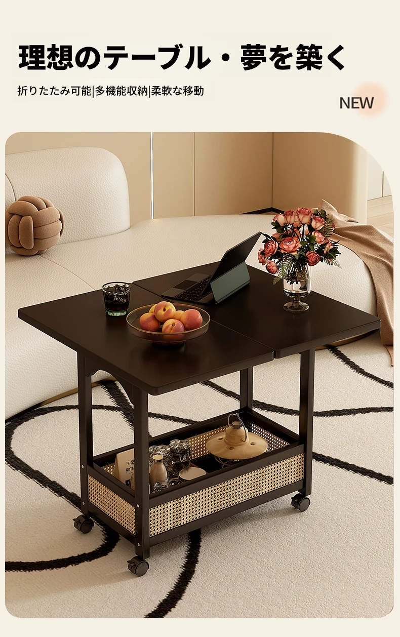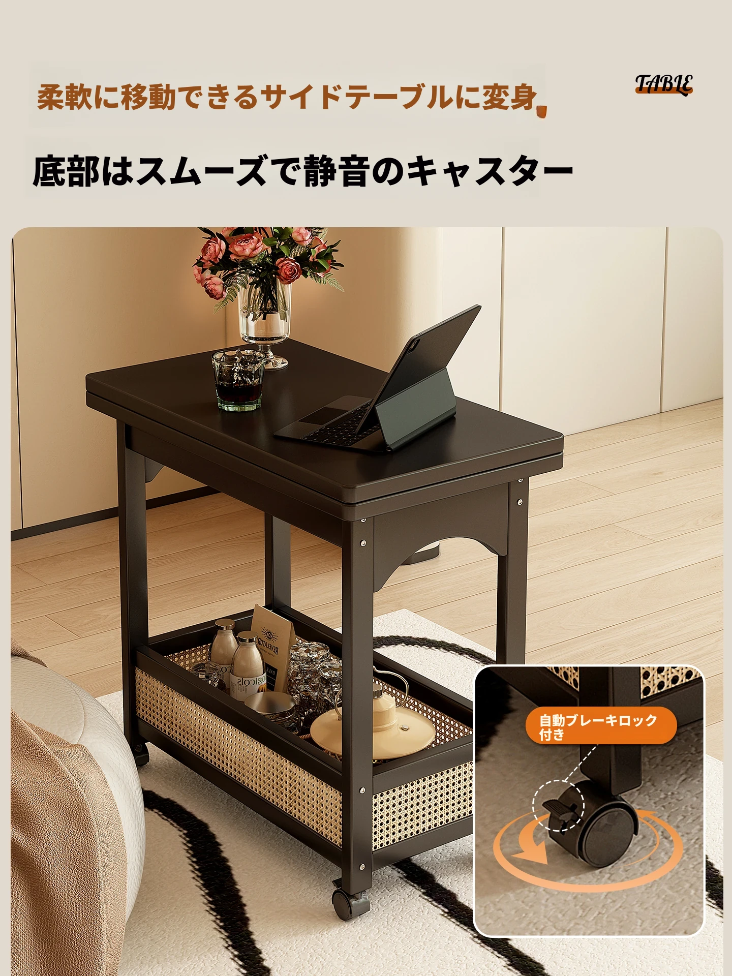 折りたたみ式モバイルサイドテーブル - 小スペースに最適なリビング用コーヒーテーブル、バルコニーにもぴったり!ソファサイドキャビネットとしても使える多機能デザイン。食事やティータイムに最適!