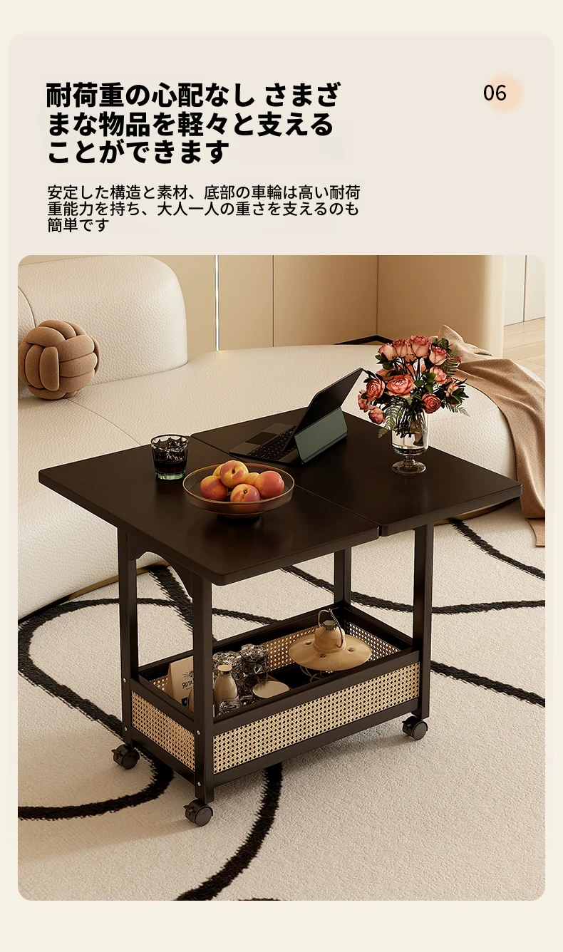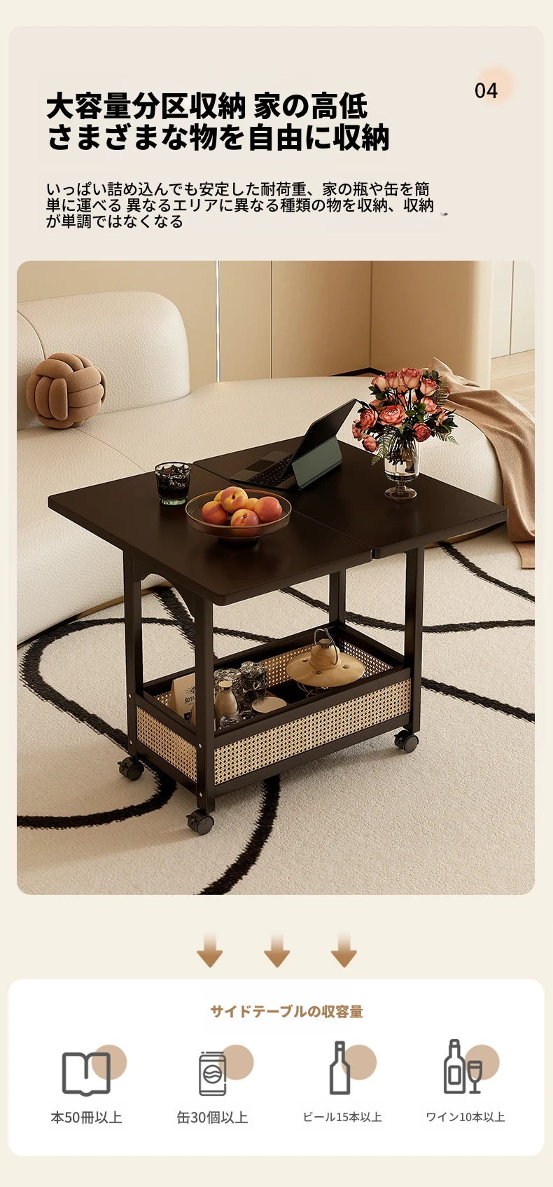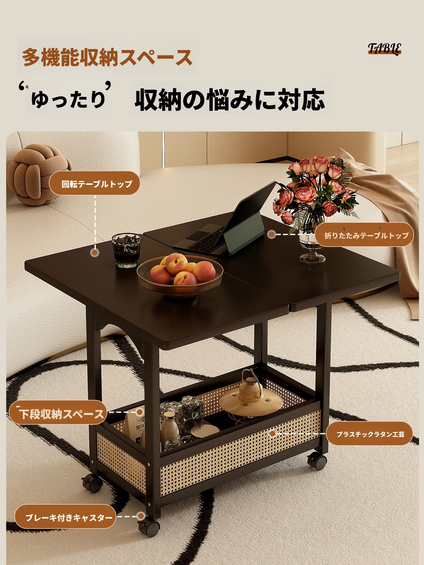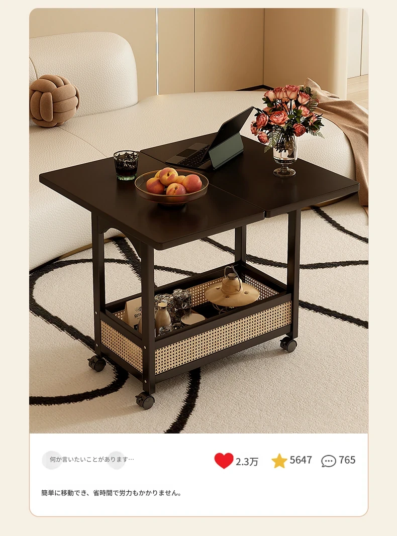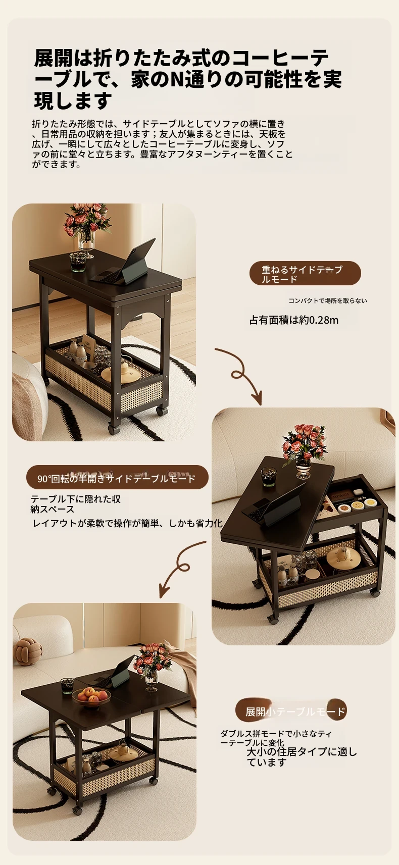 折りたたみ式モバイルサイドテーブル - 小スペースに最適なリビング用コーヒーテーブル、バルコニーにもぴったり!ソファサイドキャビネットとしても使える多機能デザイン。食事やティータイムに最適!