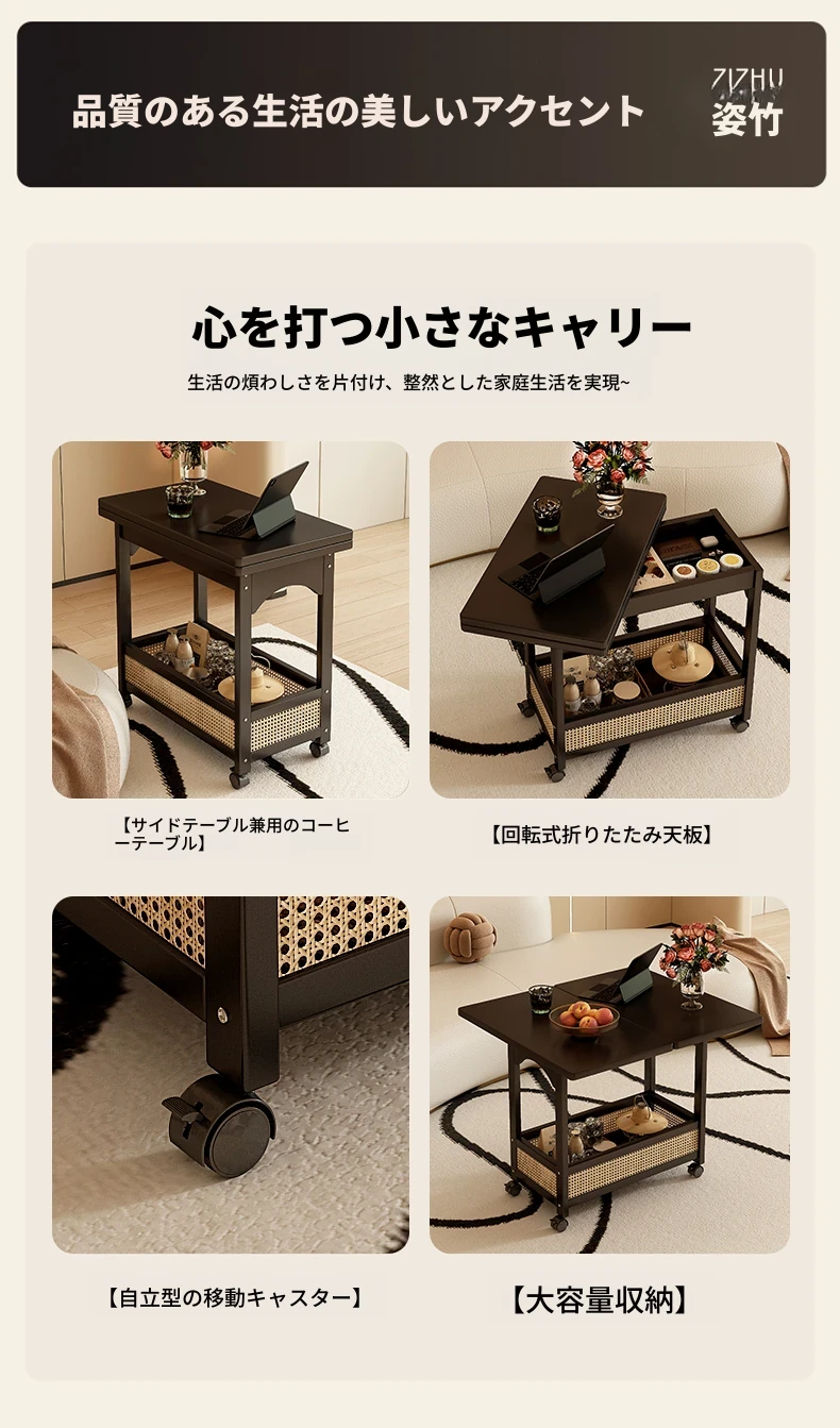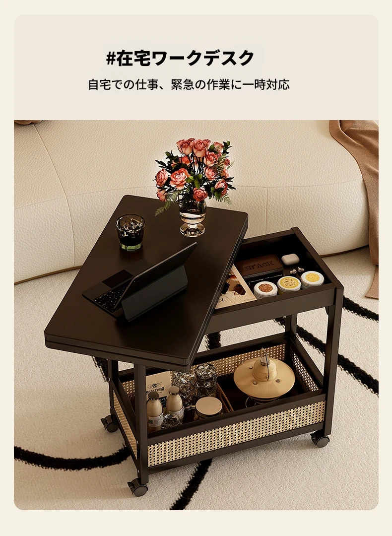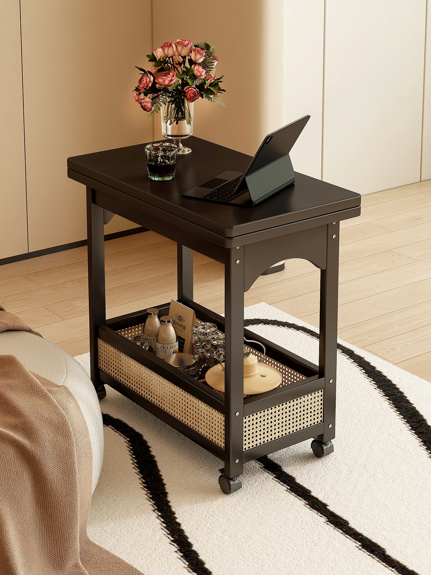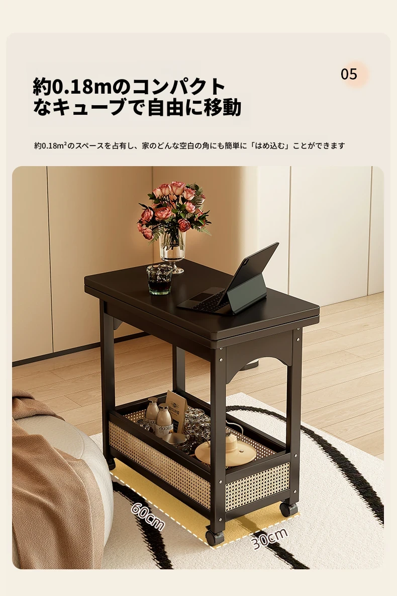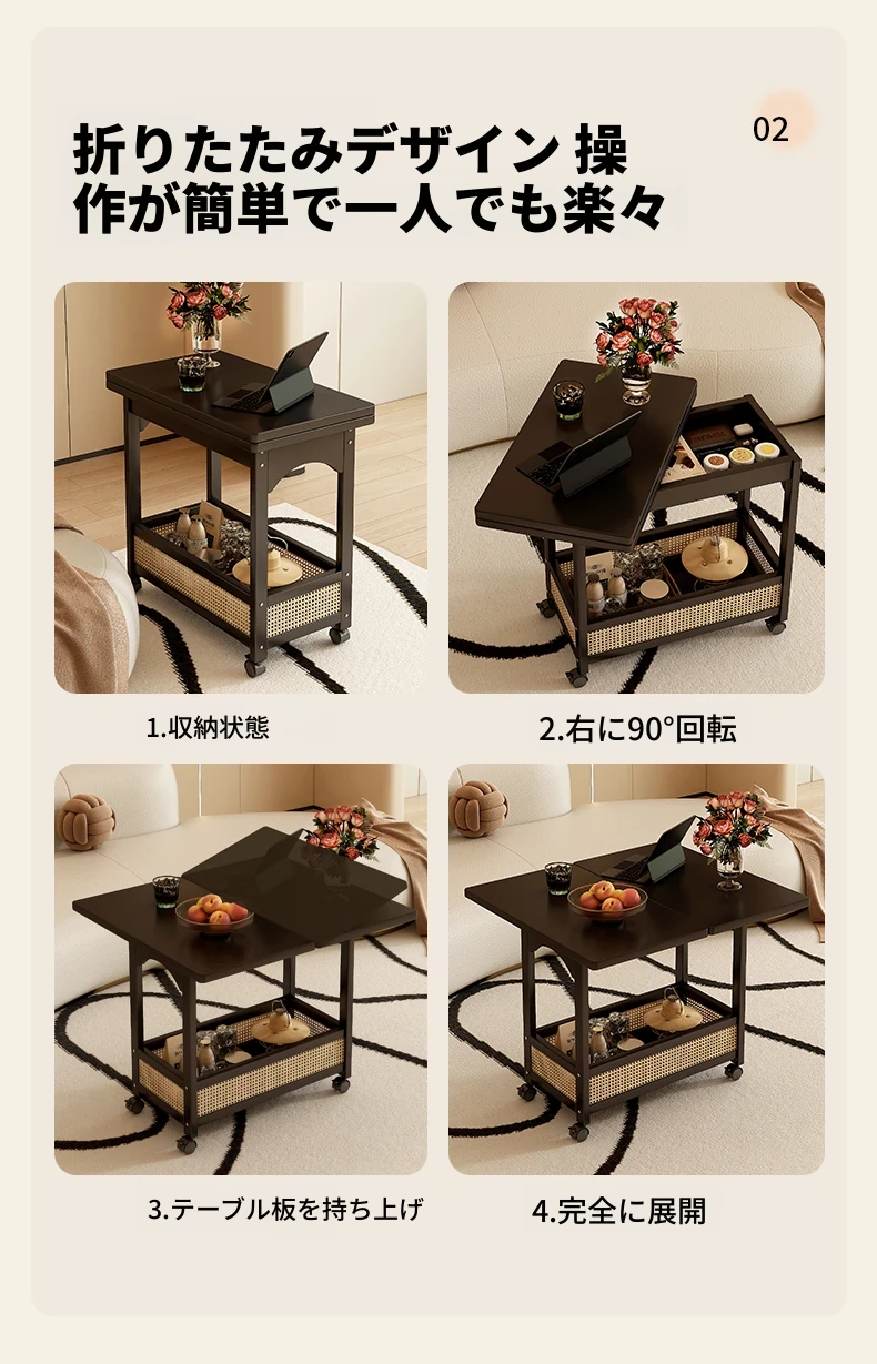 折りたたみ式モバイルサイドテーブル - 小スペースに最適なリビング用コーヒーテーブル、バルコニーにもぴったり!ソファサイドキャビネットとしても使える多機能デザイン。食事やティータイムに最適!