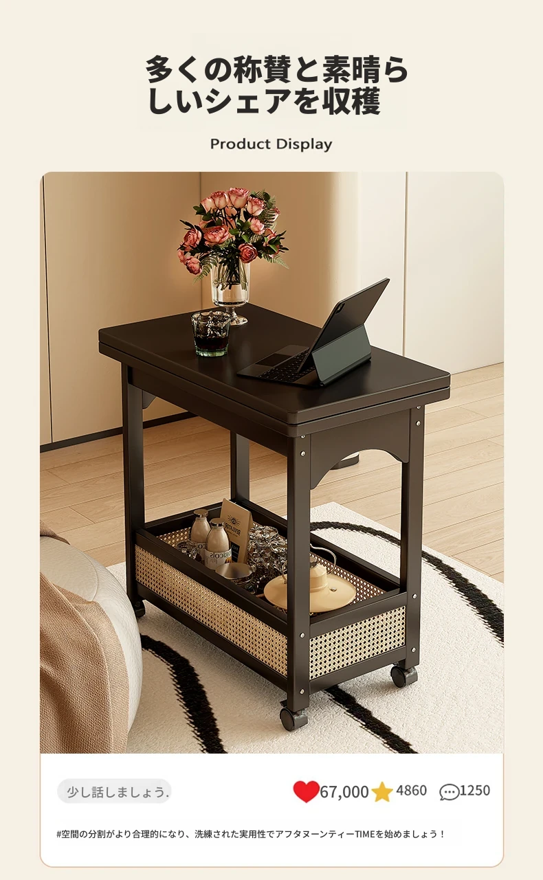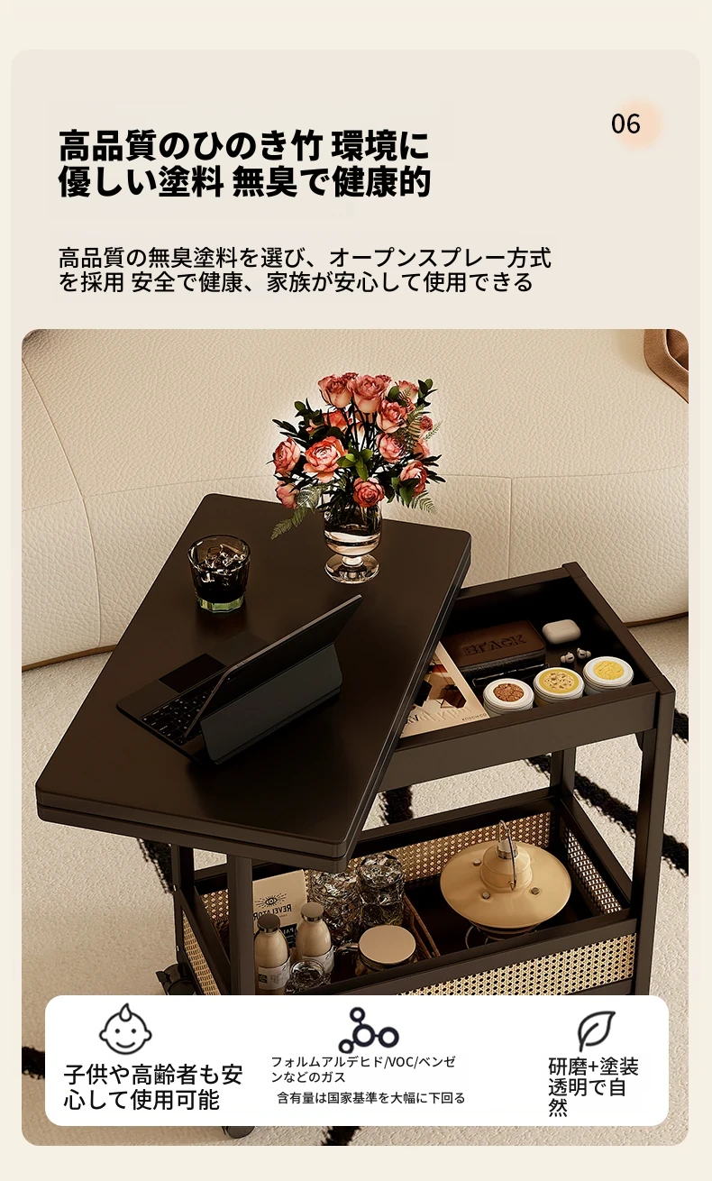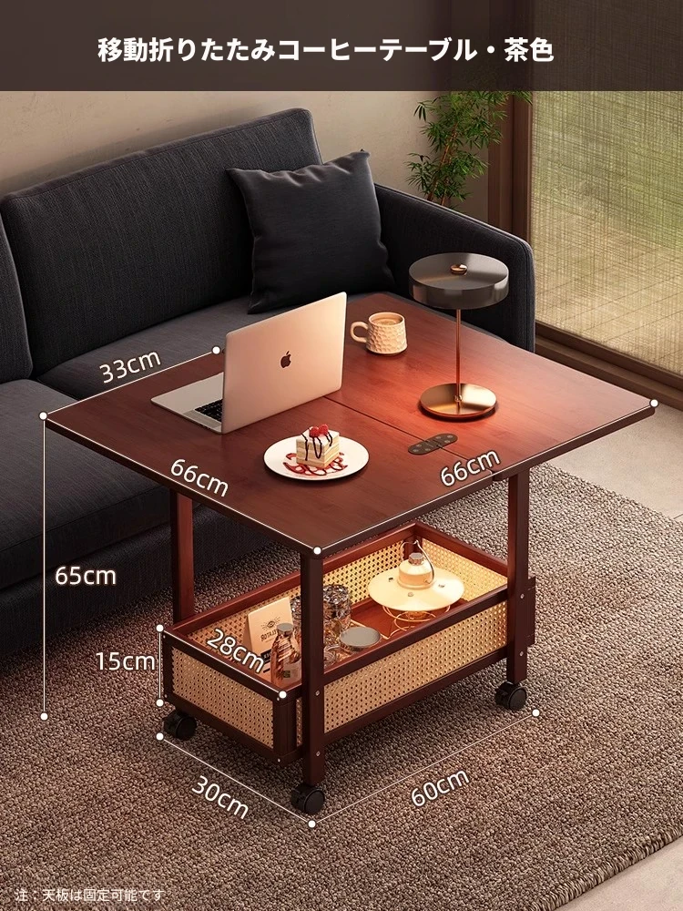 【山茶色】⭐移動可能な折りたたみサイドテーブル⭐10年保証