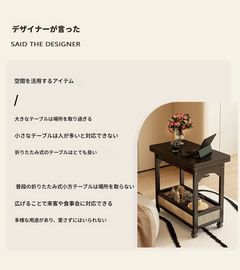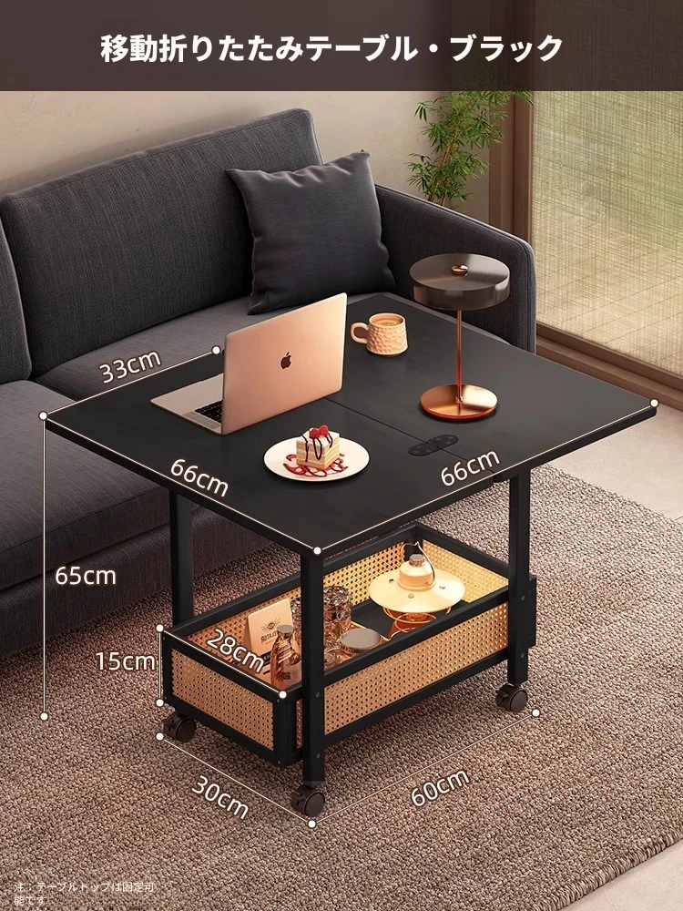 【ジェントルマンブラック】⭐移動可能な折りたたみサイドテーブル⭐10年保証