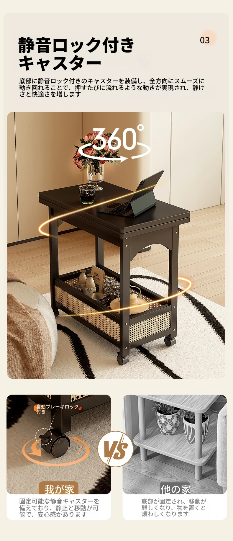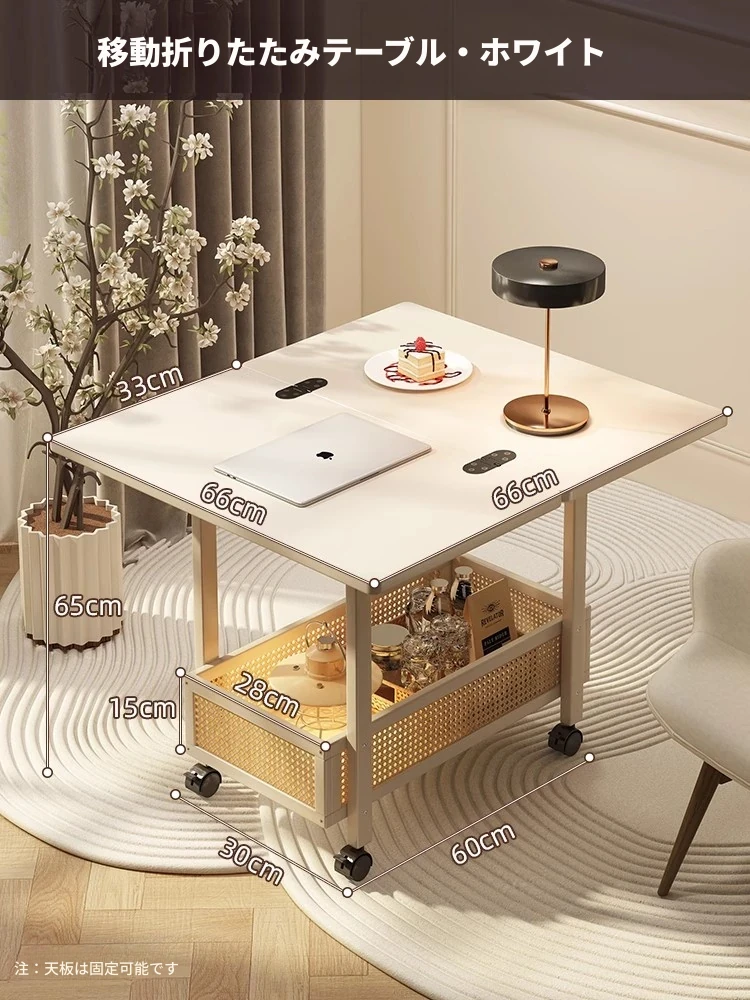 【クリームホワイト】⭐移動可能な折りたたみサイドテーブル⭐10年保証