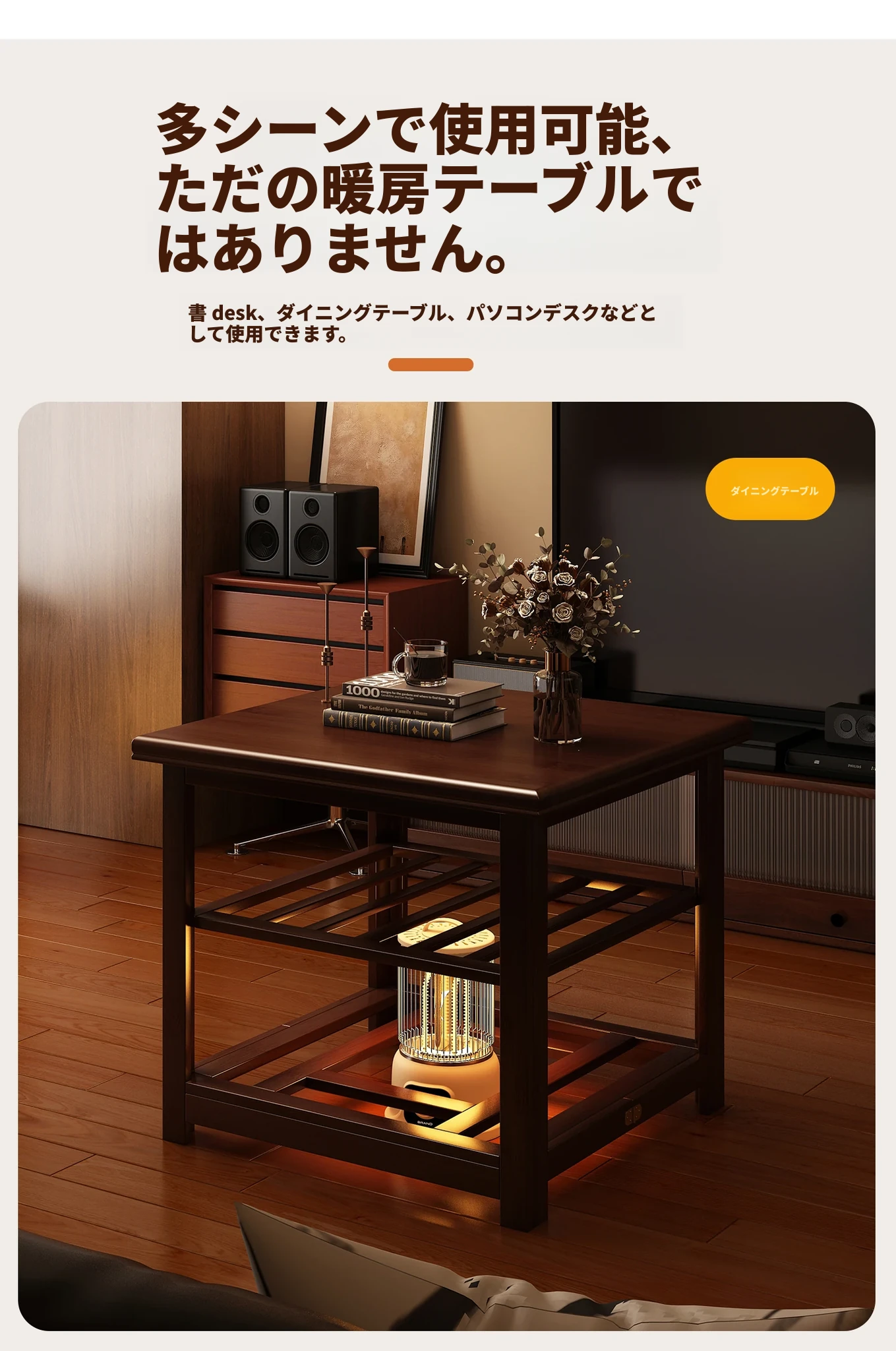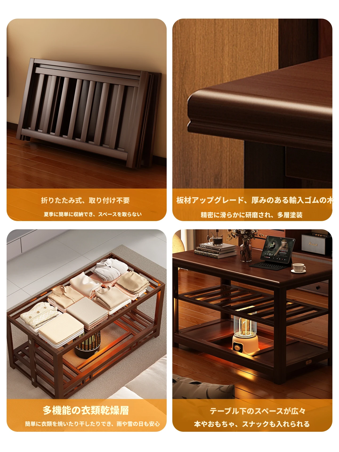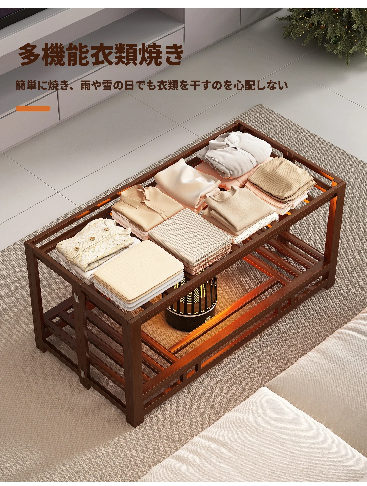 湖南の暖炉テーブル一体型、冬の暖房に最適な家庭用折りたたみダイニングテーブル!小型住宅にもぴったりな実木製の四角いデザインで、温かさとスタイルを両立!