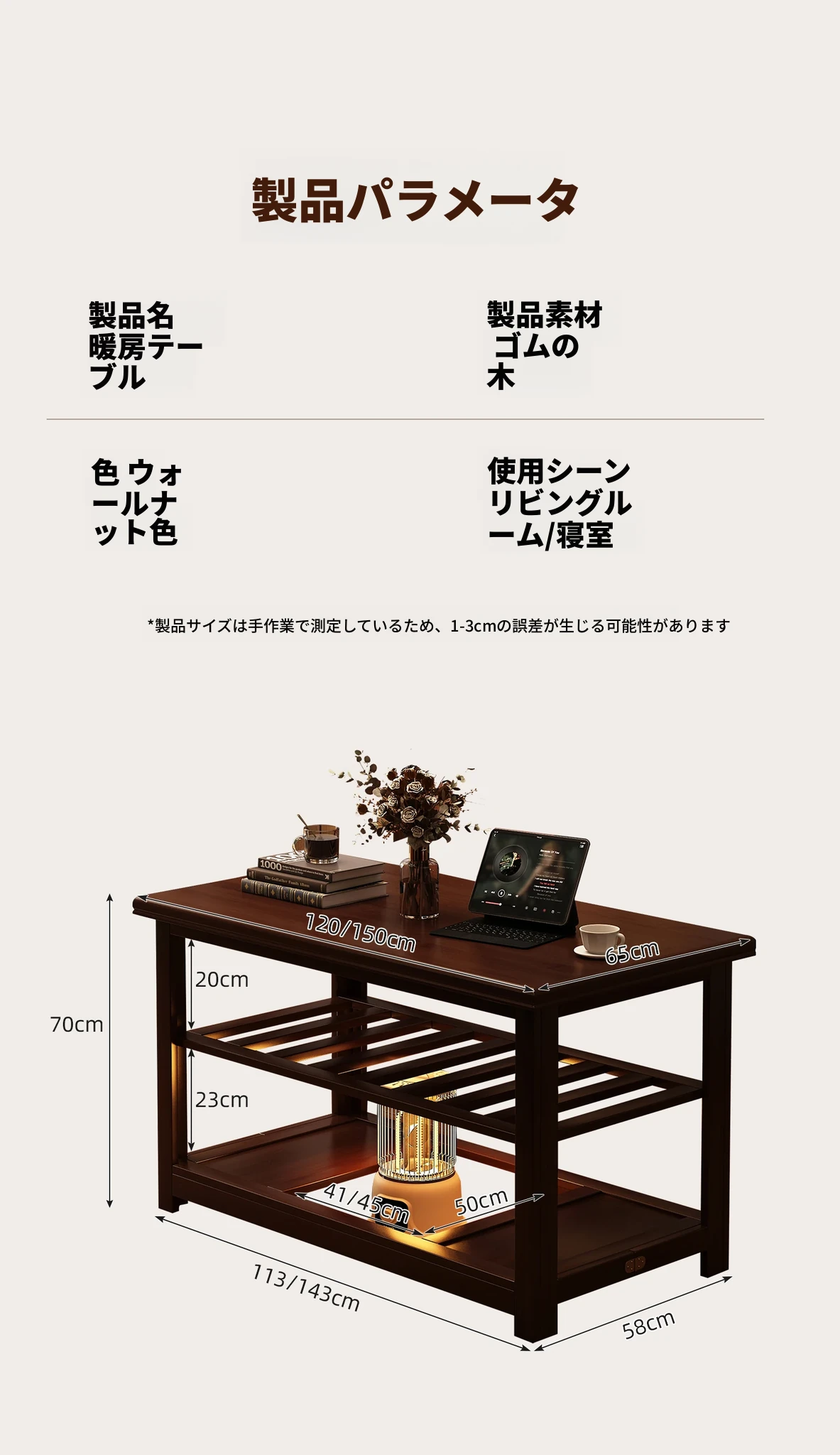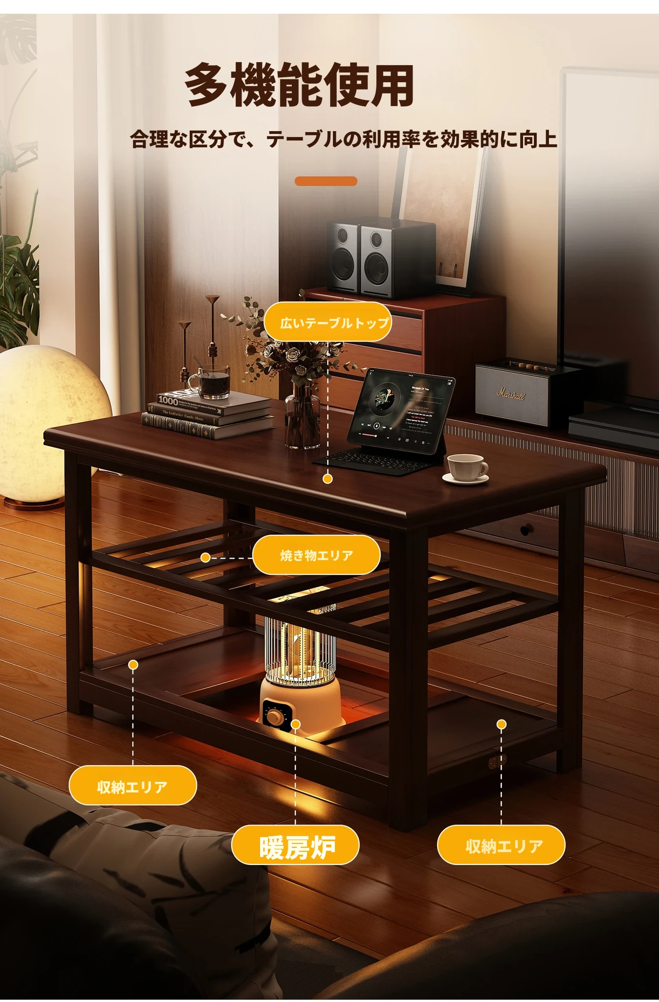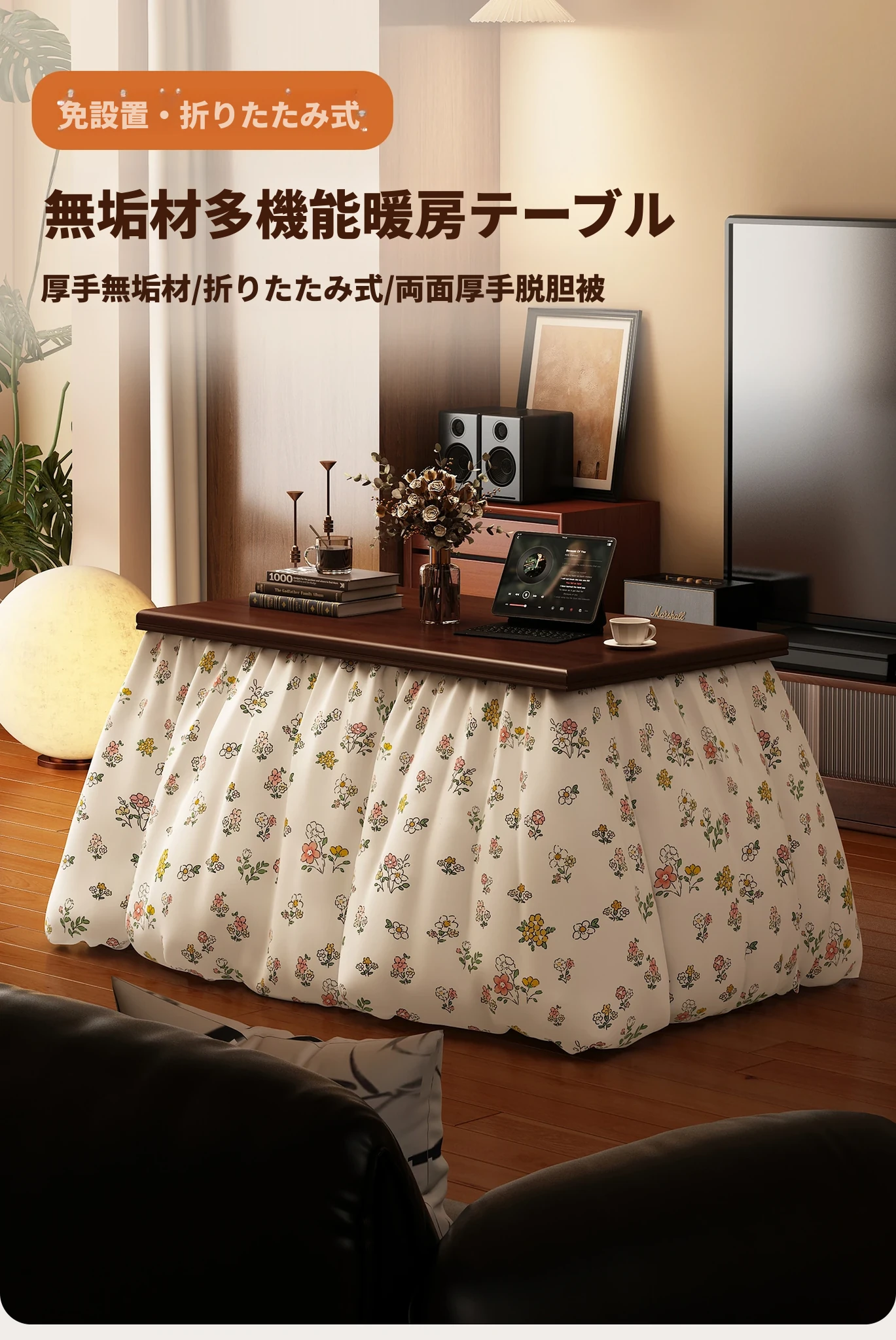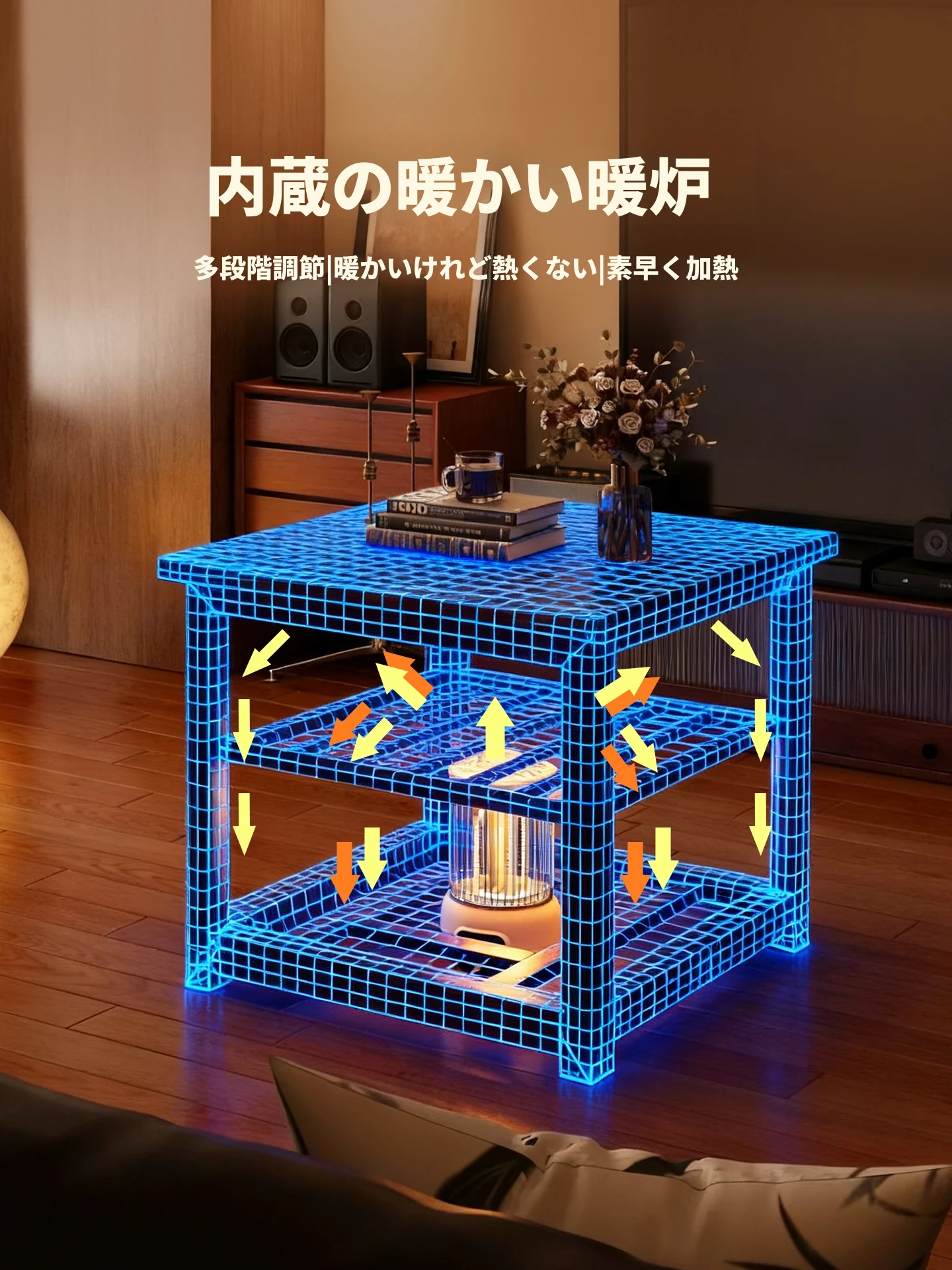 湖南の暖炉テーブル一体型、冬の暖房に最適な家庭用折りたたみダイニングテーブル!小型住宅にもぴったりな実木製の四角いデザインで、温かさとスタイルを両立!