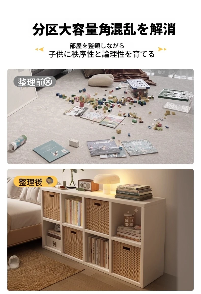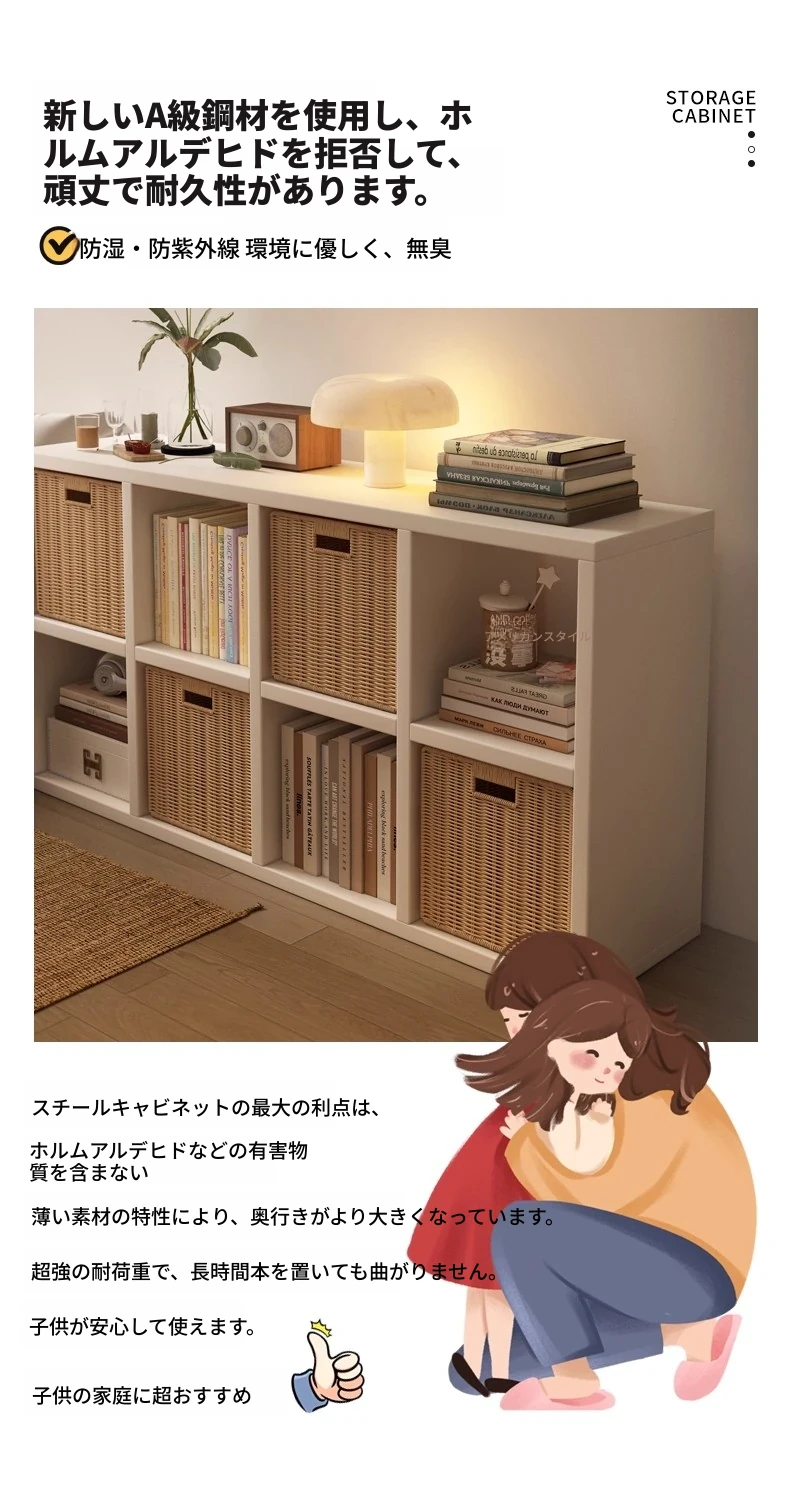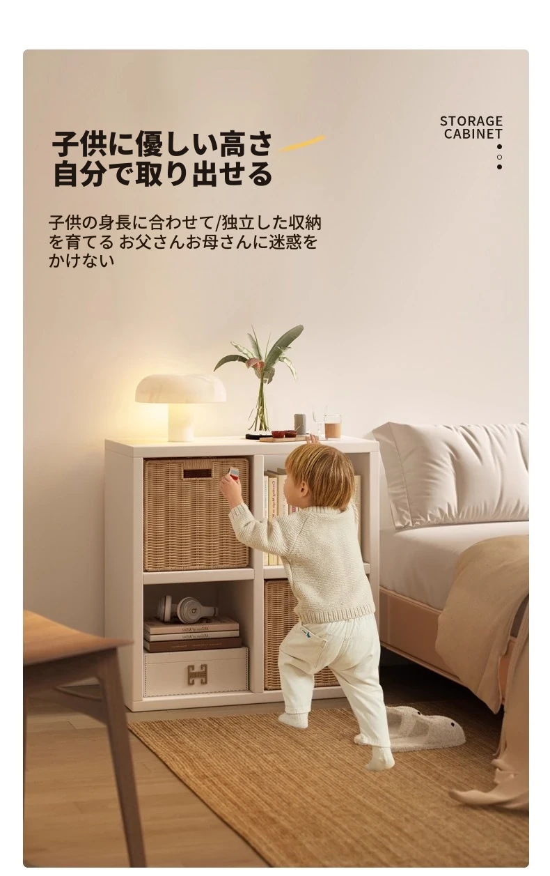 子供向け格子本棚・おもちゃ収納キャビネット!リビングにぴったりの壁際置き型収納ラック。多機能でスペースを有効活用できる、スタイリッシュな収納家具です。お部屋をスッキリ整理整頓!