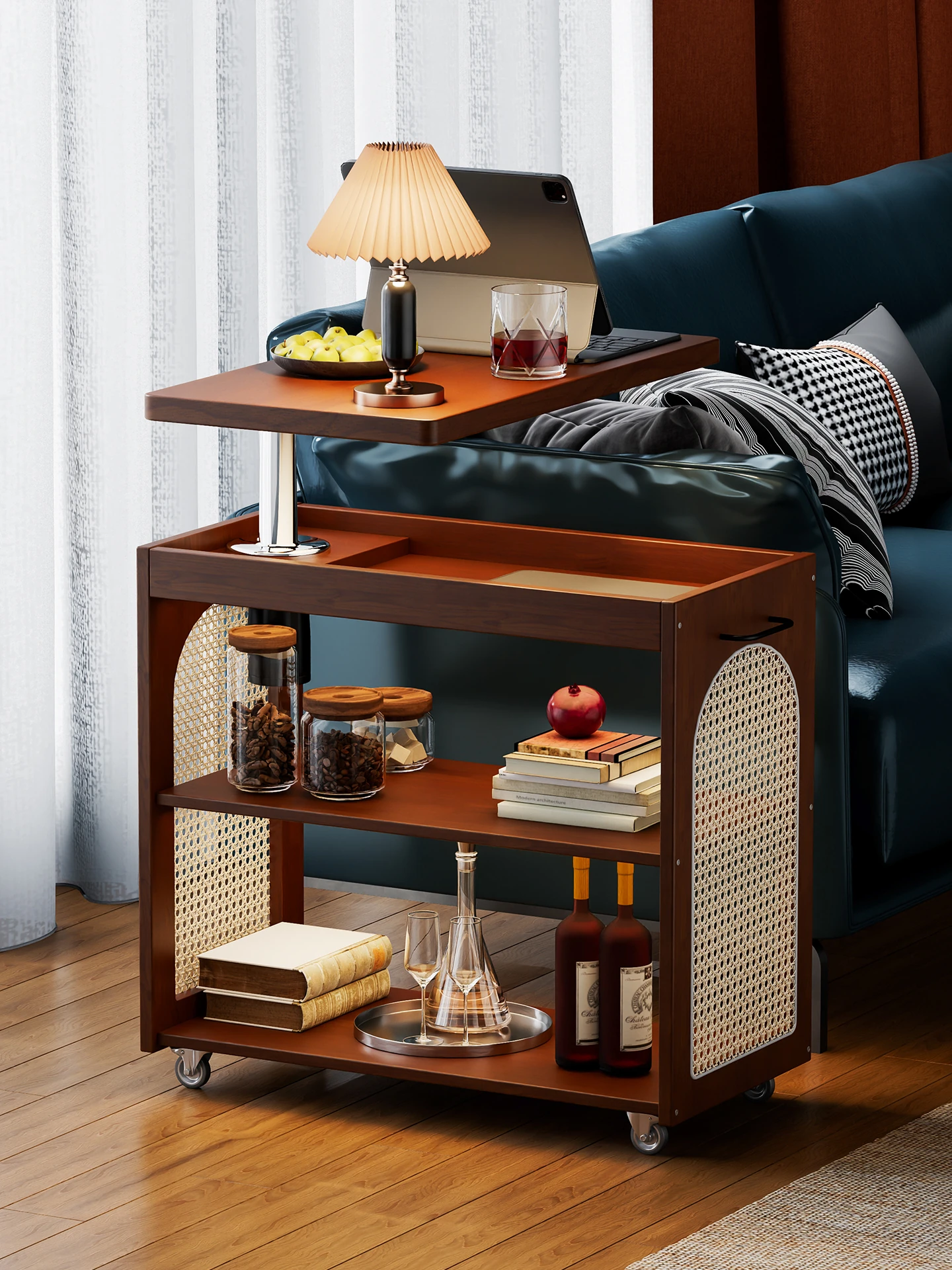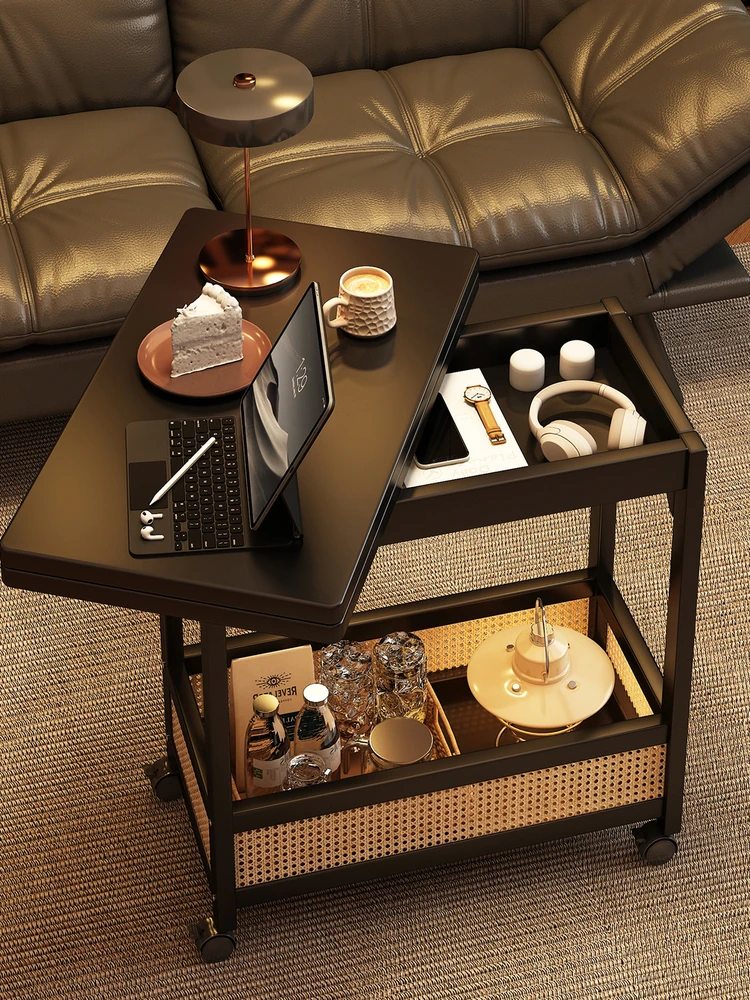 おしゃれな移動式ソファサイドテーブル!レトロデザインの小型茶卓、リビングにぴったりな収納キャリー。コンパクトなスペースでも使える便利なサイドキャビネットです。