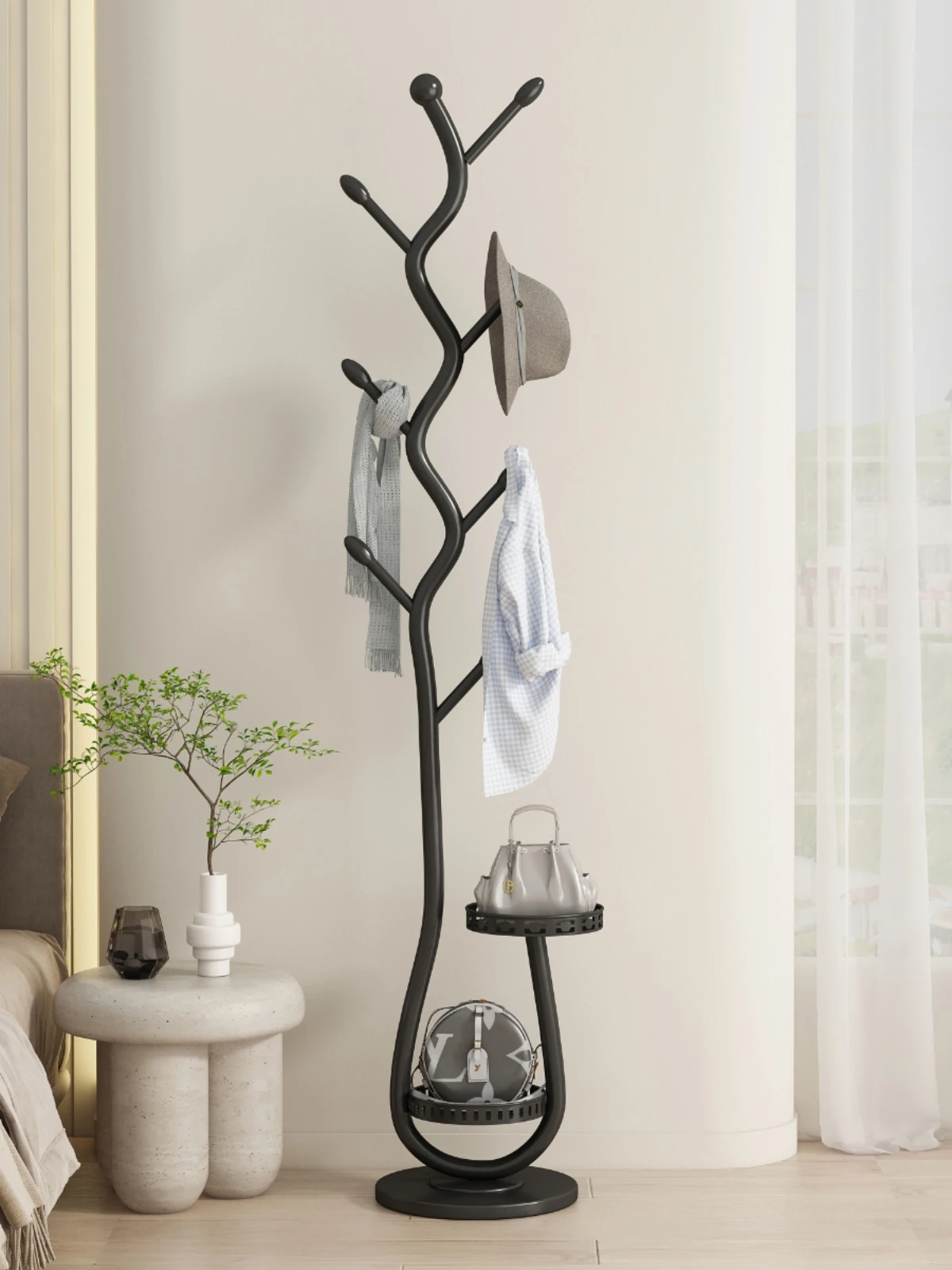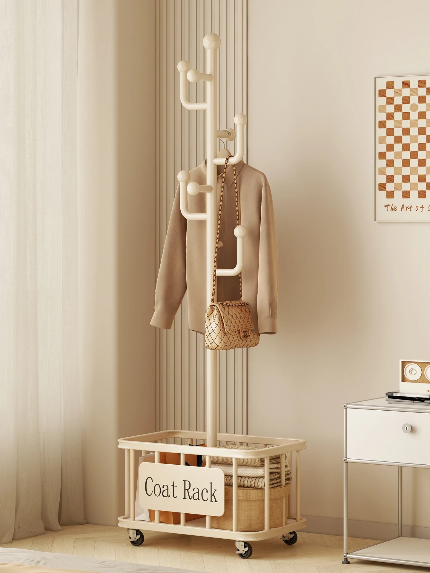 ベッドサイドに最適!移動可能な衣類ラック - 寝室や玄関にぴったりのコートハンガー。バッグや小物をすっきり収納できる便利なアイテム!おしゃれなデザインで、あなたの生活空間をより魅力的に演出します。