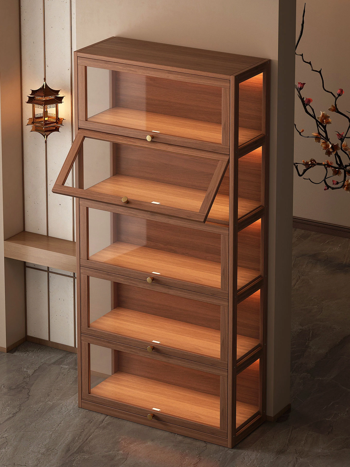 高品質の無垢材を使用した中華風の博古架!おしゃれな茶具収納とディスプレイに最適な多宝阁。ほこりを防ぐデザインで、リビングを美しく演出します。書籍も収納できる便利なフロアキャビネット!