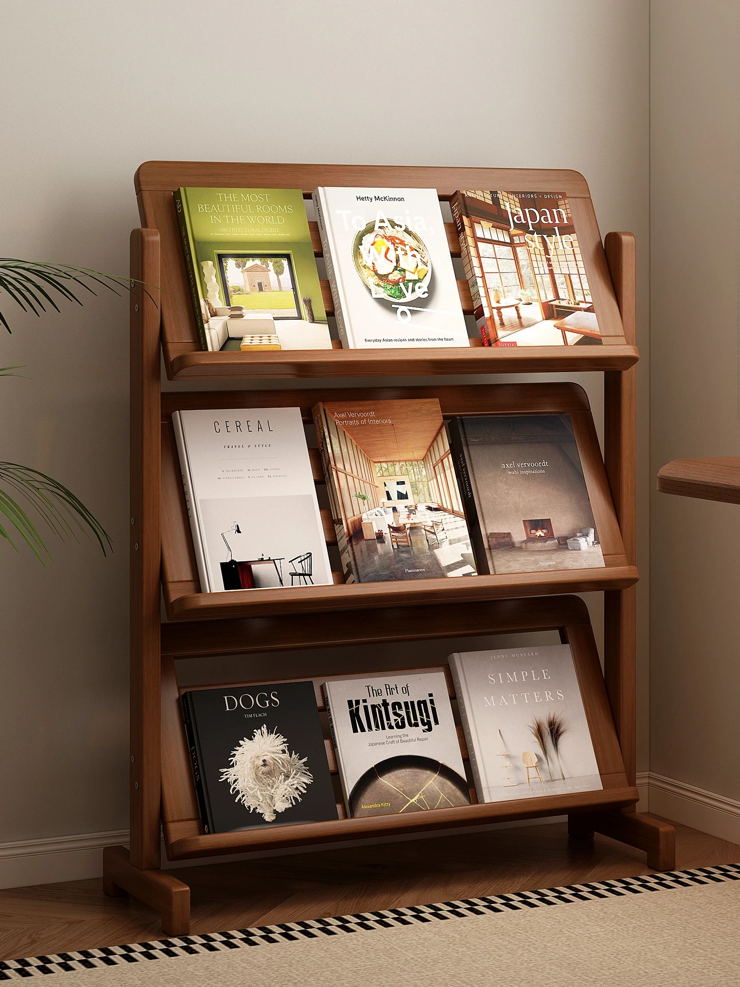中古の本棚 フロアタイプの収納ラック リビング向け 雑誌ディスプレイ スラント式 簡易絵本整理ラック 壁にぴったりフィット おしゃれなインテリアでお部屋を彩る!