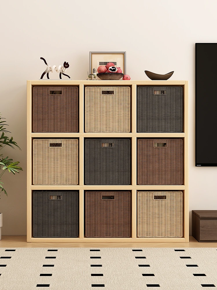 家庭用格子キャビネット 無垢材の壁面収納棚 バウハウススタイル 子供部屋に最適な多機能おもちゃ収納キャビネット おしゃれで実用的!