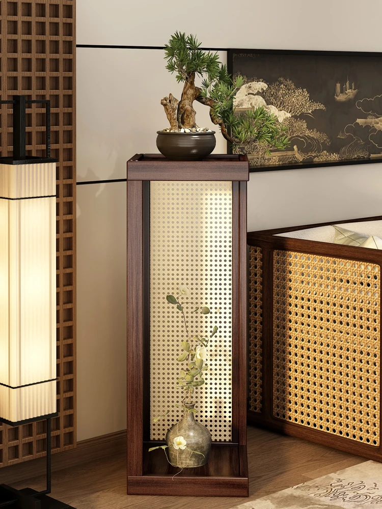 実木製中華風フラワースタンド - リビングやバルコニーにぴったりの落地式花盆&収納ラック!茶室にも最適な木製ディスプレイラック。おしゃれで機能的なインテリアの必需品!