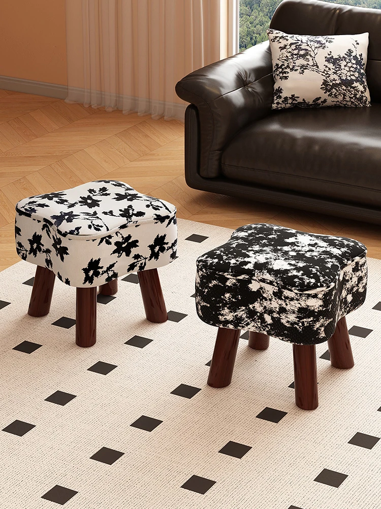 家用小凳子 - 低床タイプのシンプルなリビング用テーブル、玄関での靴替えにも最適!ふかふかのクッション付きで快適な座り心地。寝室やリラックスソファにもぴったりな天然木製のスタイリッシュなデザイン!