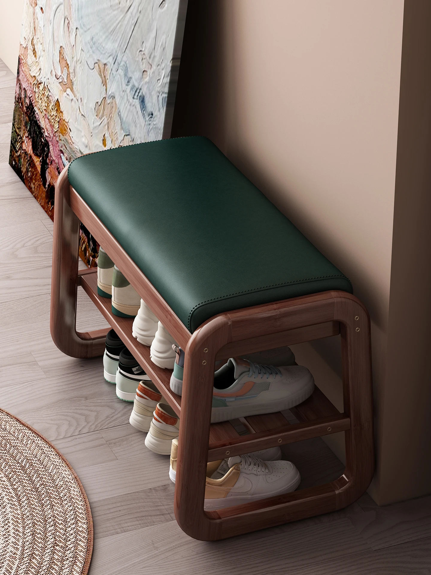 無垢材の靴を履くためのベンチ - 家庭用、収納付き、スリムなデザインで玄関にぴったり!座れるだけでなく、靴の収納もできる一体型。おしゃれで実用的な入門用ベンチです!