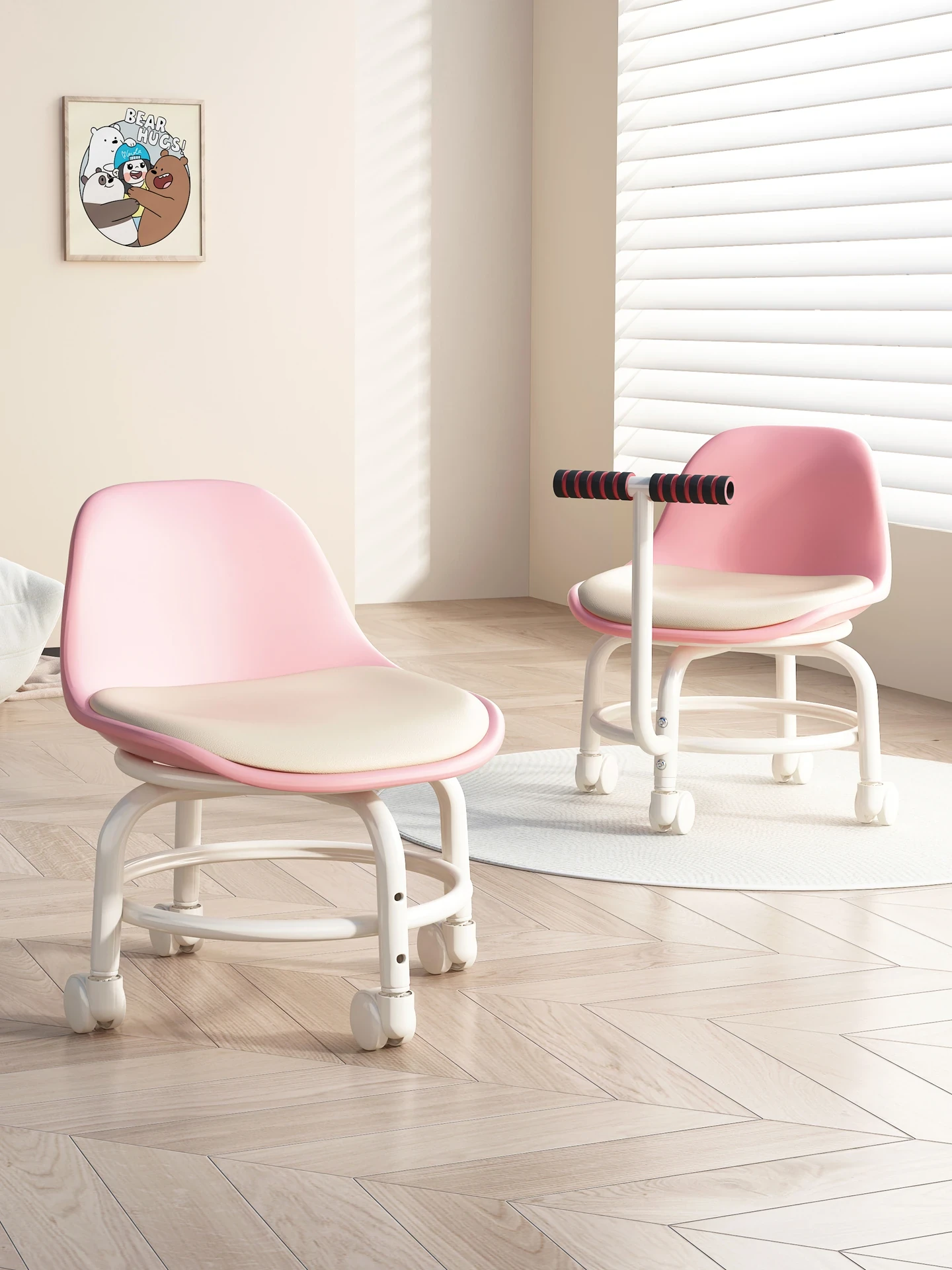 子供用歩行補助椅子 室内用 背もたれ付き 移動に便利なキャスター付き 小さくて軽い持ち手付き 折りたたみ可能な低い椅子で、安全に楽しく成長をサポート!