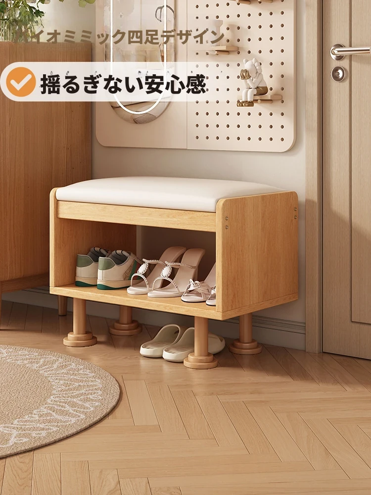かわいいデザインの無垢材シューズベンチ - 学生や家庭用に最適!玄関や入り口で使えるシンプルな収納付きスツール。靴棚としても活躍する、おしゃれで実用的なアイテムです。